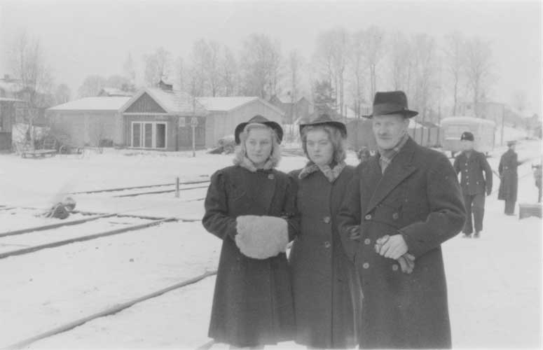 Okänd, Anna-Stina och August Herman på Årjängs järnvägsstation, vintern 1940-41.