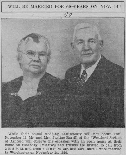 Tidningsurklipp om Amandas och Justins guldbröllop (1939)