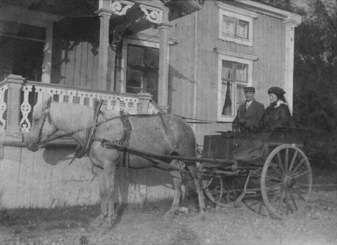 Anna Lovisa och sonen Yngve utanför huset i Boden, Gullan = dottern Gullie