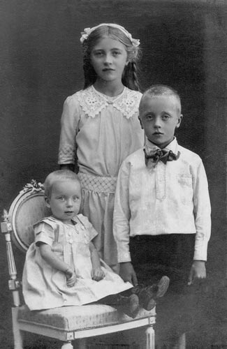 Wilhelms och Helenes barn Britta (stående), Bengt och Ellen (sittande) (ca 1913, Köpenhamn)