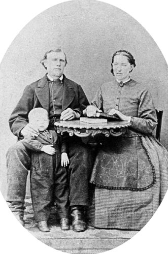 Karl 3-4 år gammal med föräldrarna Nils Larsson och Anna Kajsa Andersdotter (ca 1879)
