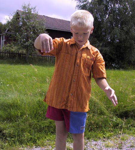 Herman tappar sin första fisk.